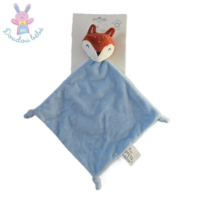 Doudou plat Renard Faon bleu marron blanc MES PETITS CAILLOUX