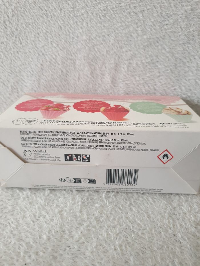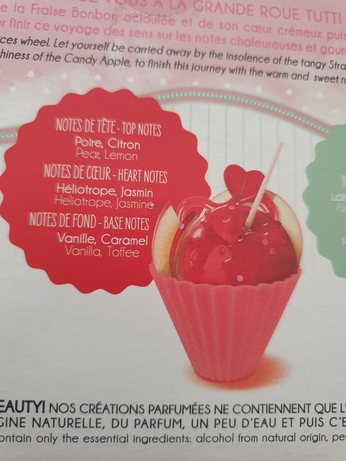 Boite de 3 flacons Tutti Delices Eau de toilette. Fraise bonbon 50ml Pomme d'amour 50ml Macaron Amande 50ml. Neuf, juste déballée pour la photo