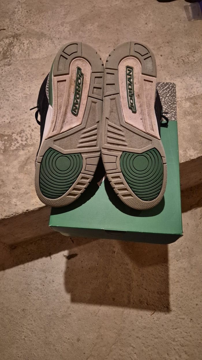 Air Jordan 3 rétro. Nike Taille 7.5. Pointure 41.5 Excellent état. Entretien soigné. Vert. Noir. Blanc. Gris.