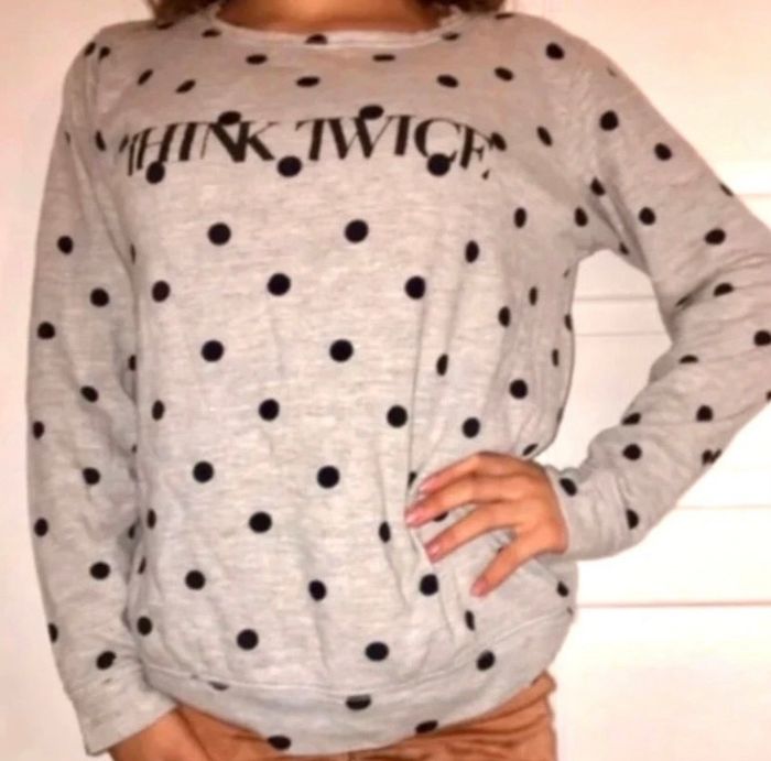 Sweat couleur gris à pois noir bon état taille m marque stradivarius ( je fais un 34 pour un effet loose)