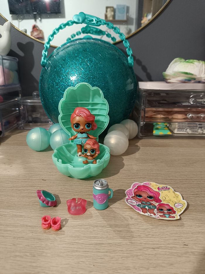 Bonjour, Je vends cette grosse boule poupée lol avec tout les accessoires, les petites boules et la grosse boule ainsi que le coquillage, j'ai tout emballé correctement comme sur la photo.