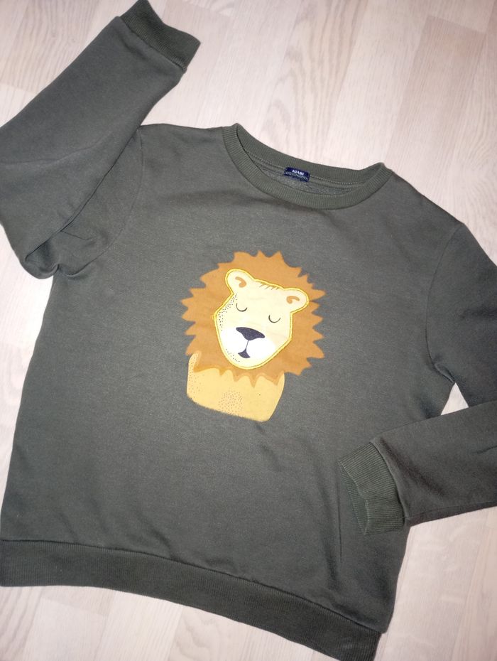 Sweat-shirt kaki motif lion Kiabi T. 10 ans