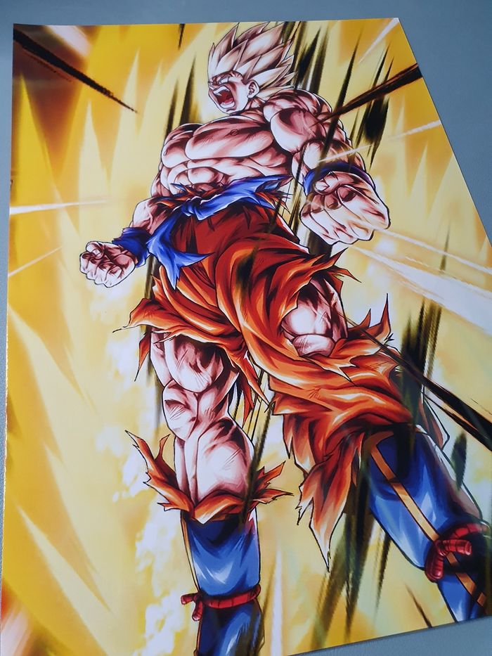 1 affiche /poster neuve. Illustration de goku super sayen sur papier photo /glossy /brillant de 180g. Format A4 21cmx29.7cm CADRE NON INCLUS. Renforcé dans une enveloppe pour protéger l'affiche. #poster #affiche #a4 #goku #vegeta #broly #gohan #krilin #dbz #dragonballz #noel #cadeaudenoel #pèrenoel #fetes #fêtedenoel