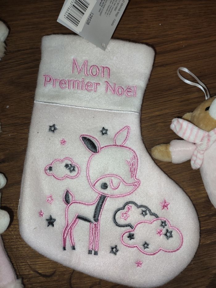 * Une chaussette mon premier Noël neuve H.24 cm ...12€ pièce