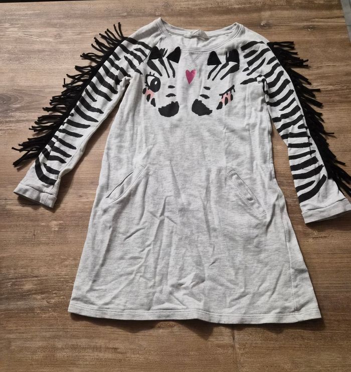 Jolie robe originale avec des têtes de zèbre sur l'avant et des franges simulant la crinière sur les manches Taille 6/8 ans #fille8anstattoogirl_3