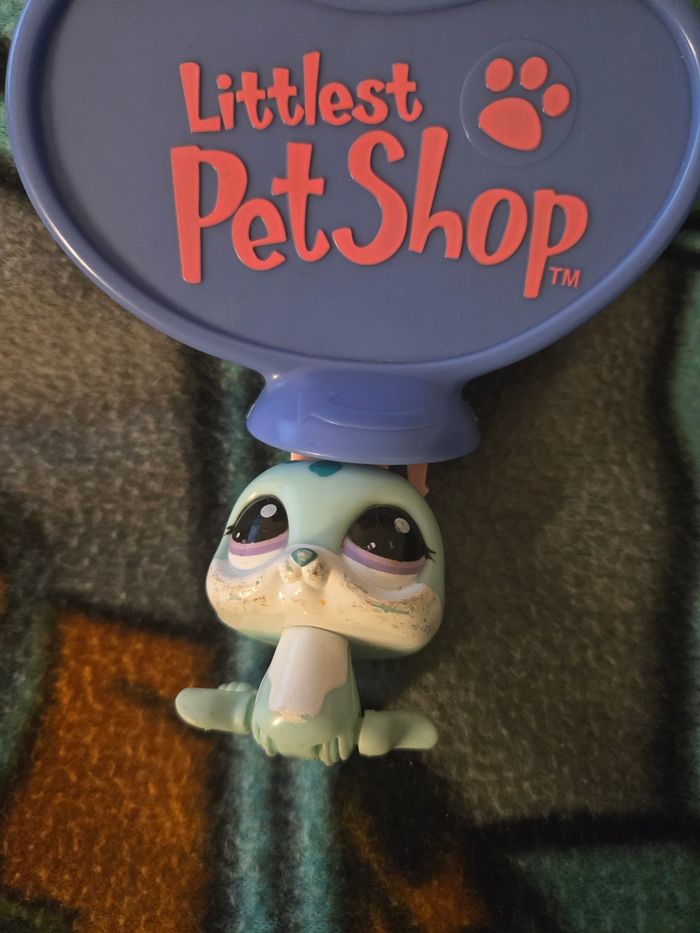 Petshop phoque en bon état de couleur bleu et blanc. Il est un peu abîmé au niveau du blanc.