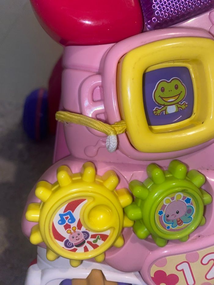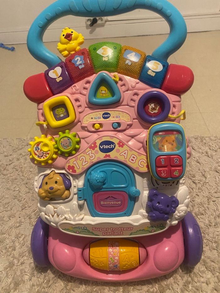 APPRENTISSAGES : L’enfant découvre les couleurs, les formes, des musiques, les premiers chiffres, des phrases et des effets sonores rigolos. Les couleurs vives et les 5 touches Piano lumineuses stimulent son sens visuel. Il développe aussi sa motricité grâce aux engrenages, grosses touches colorées, téléphone amovible avec petites billes, papillon aux ailes mobiles, piano et rouleaux sonores