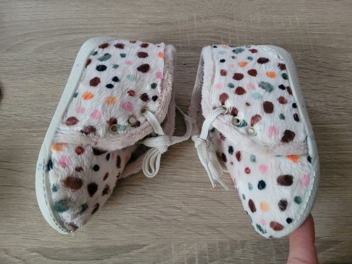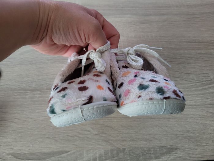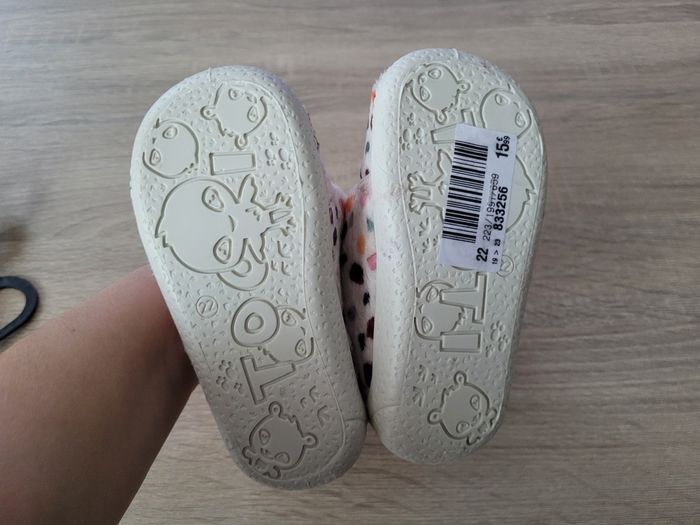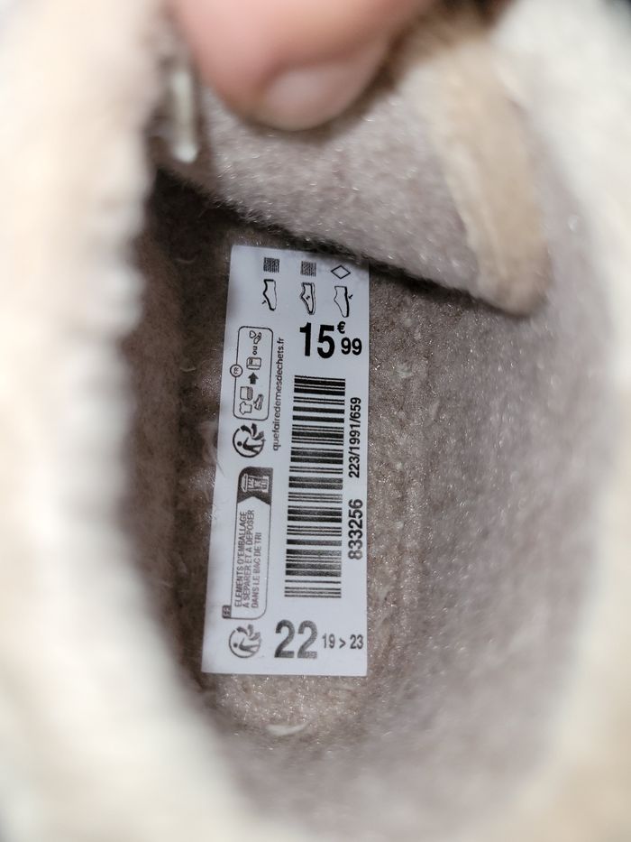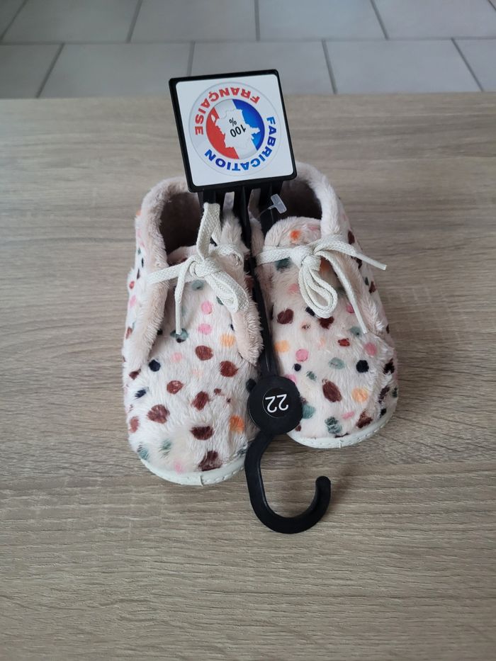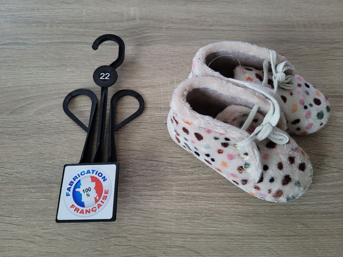 Vend paire de chaussons fille taille 22 neuve, jamais portée. Erreur de taille et impossibilité de retour à temps. Acheté à 15,99 euros. Fabrication 100% française. Vendu tel que sur la publication.