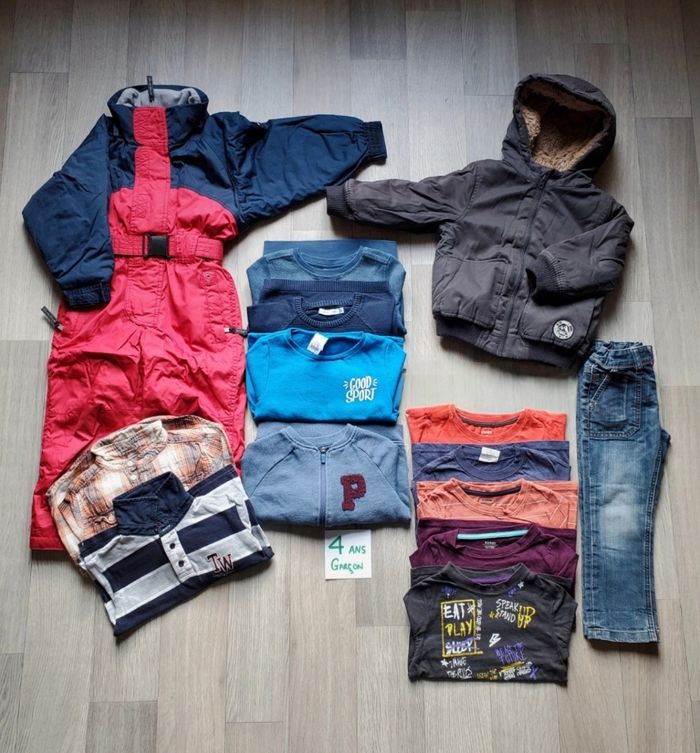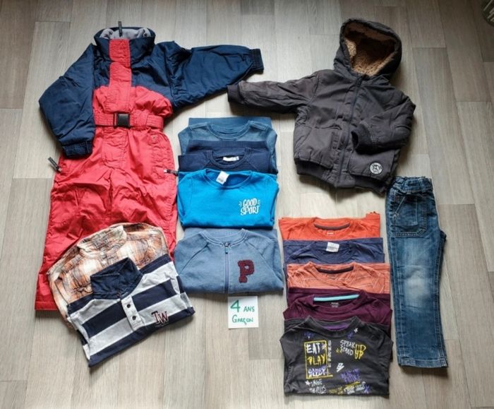 4 ans / Toutes marques / de bon à très bon état, un peu de bouloches sur un pull, une veste et la chemise