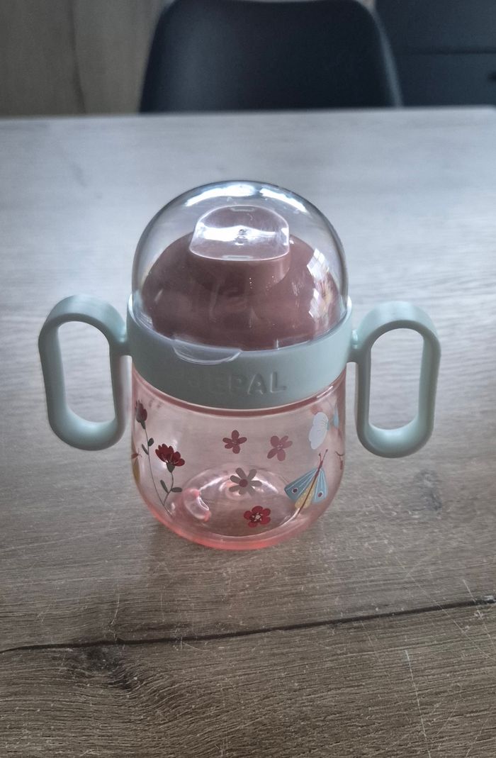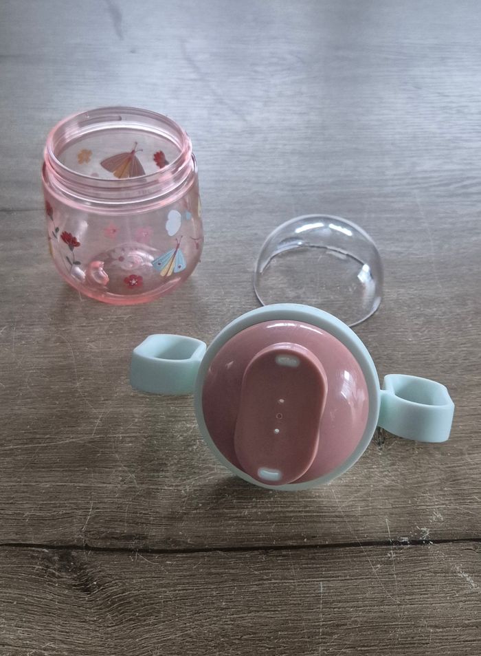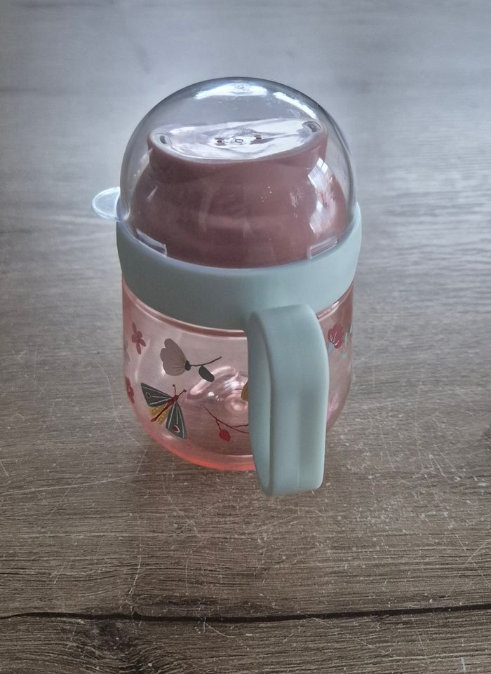 Gobelet d'apprentissage anti-gouttes à motifs fleurs et papillons Anses intégrées Little Dutch Comme neuf, servi 2-3 fois