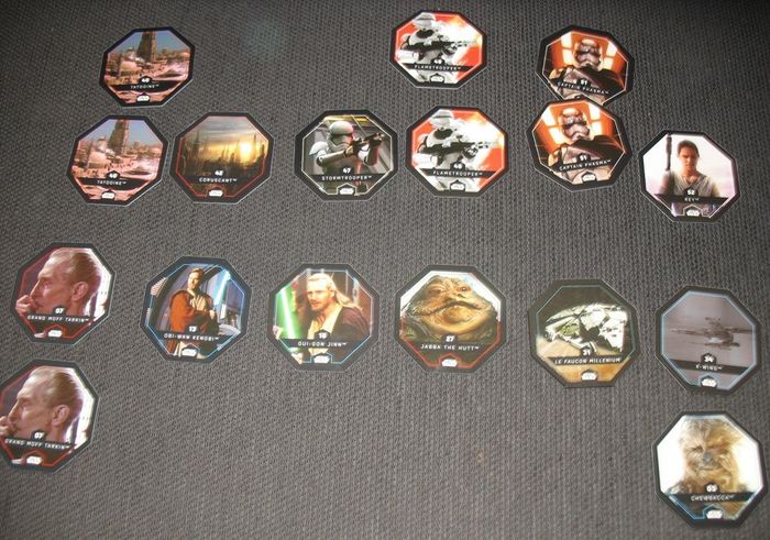 #Collections_Nathg2210 COLLECTION : JETONS "STAR WARS" 2015 - NEUF - n°01 Afin de finir votre collection, il me reste en ma possession les numéros : N°3 (x1) - N°4 (2) - N°7 (x2) - N°9 (x1) - N°13 (x1) - N°14 (x1) - N°17 (x1) - N°18 (x1) - N°19 (x2) - N°27 (x1) - N°32 (x2) - N°37 (x1) - N°38 (x1) - N°40 ( x2) N°43 (x1) - N°44 (x1) - N°45 (x1) - N°47 (x1) - N°48 (x3) - N°49 (x2) - N°50 (x2) - N°51 (x2) - N°52 (x1) Vendu à l'unité au prix de 0.20€ ou 3.00€ le lot. Article Neuf sans emballage - Stocké dans une boite. Possibilité d'envoyer d'autres photos sur simple demande. Maison non-fumeur - Sans animaux. Réduction lot activée. Allez voir mes autres ventes, je vide les placards. Beaucoup de vêtements de marque et beaucoup de jouets. Remise en mains propres ou possibilité d'envoi au tarif en vigueur à votre charge. Retour Refusé. Pour tout renseignement, n'hésitez pas à me contacter, je répondrai volontiers à vos questions. Réponse Assurée. Pour Consulter mes autres annonces tapez Nathg2210.