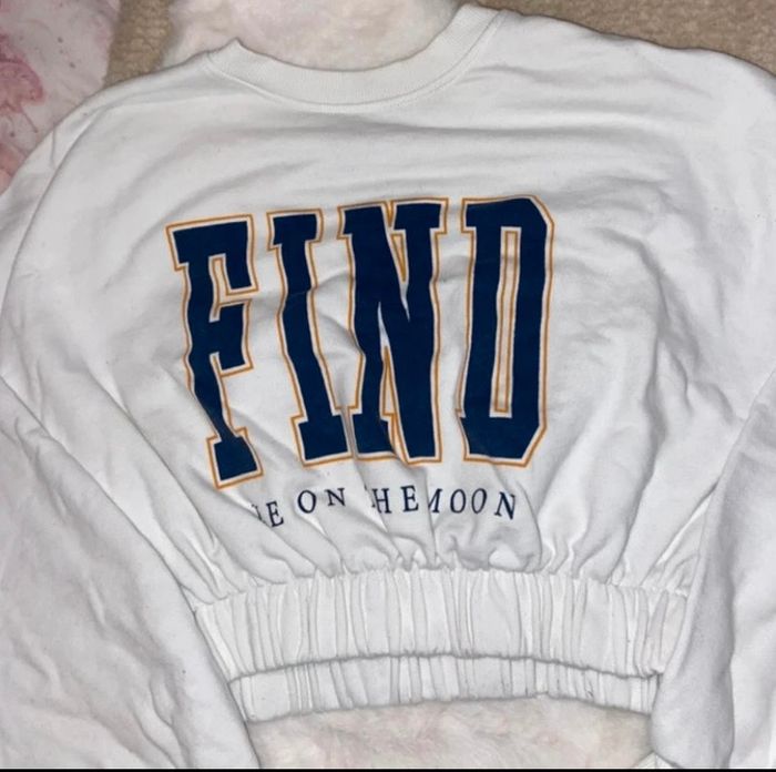 Sweat crop couleur bleu et jaune find taille 36 marque bershka - photo numéro 1