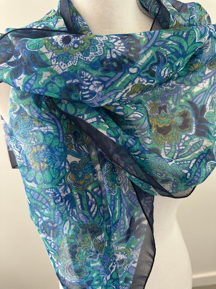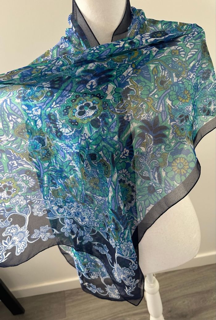 Foulard étole à fleurs bleu Vintage 45x180cm - photo numéro 4