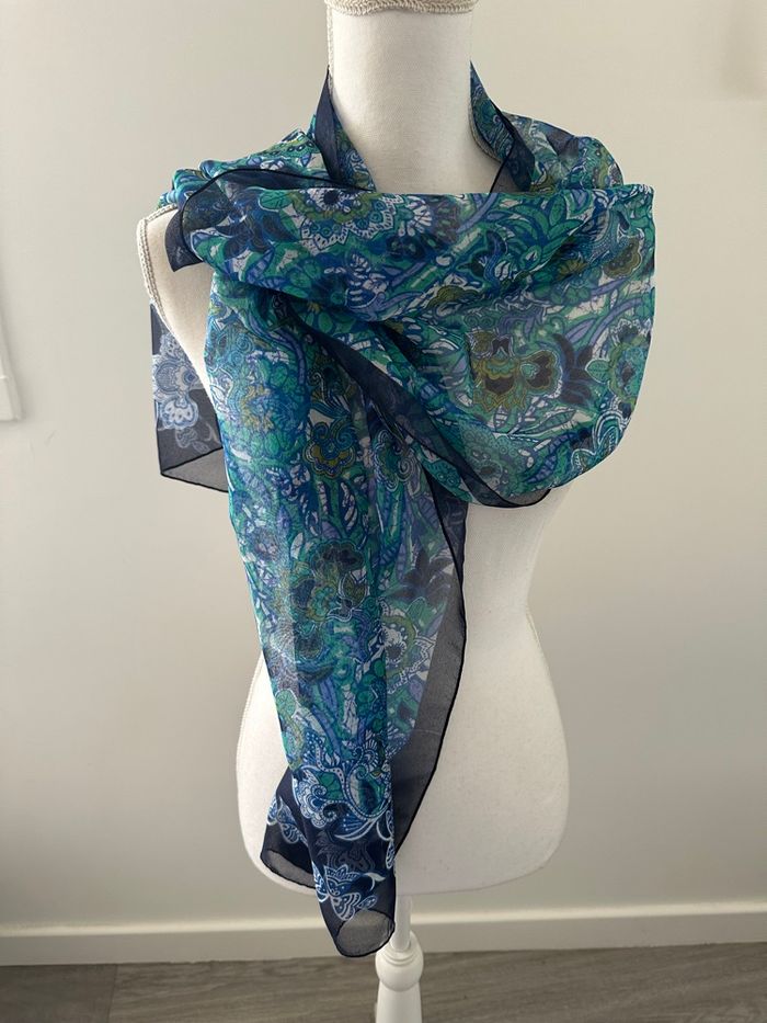 Foulard étole à fleurs bleu Vintage 45x180cm - photo numéro 5