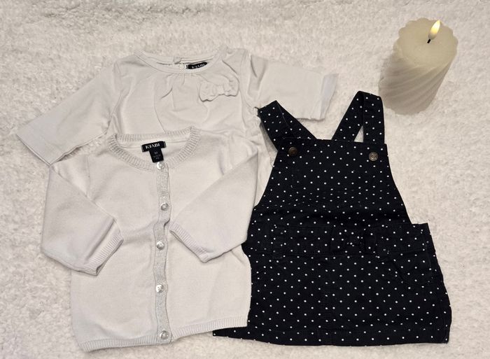 #1moisfille_tatianaalena Jolie ensemble 3 mois Taille 📏: 1 mois Marque : Kiabi État 🏷️: Très bon etat Couleur 🎨 : Blanc / Marine