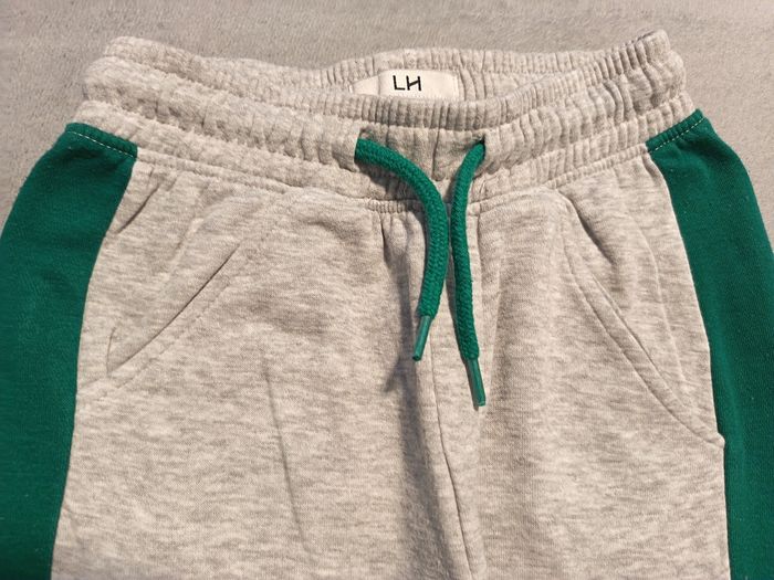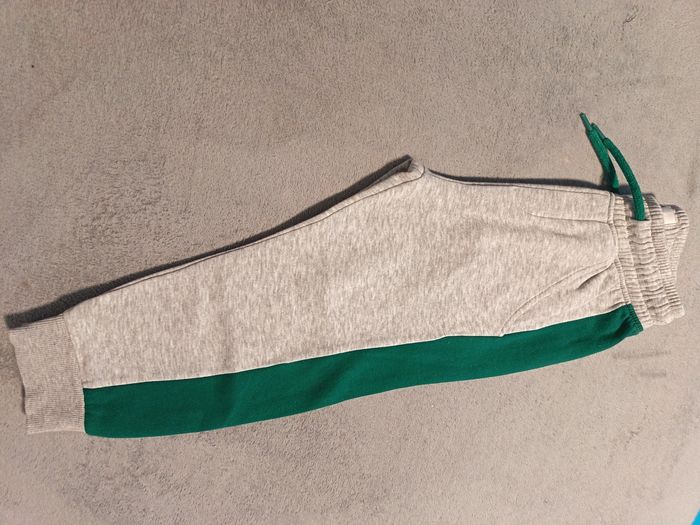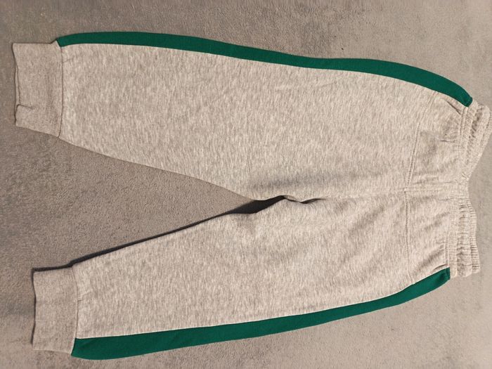 Pantalon La Halle gris clair avec bande verte sur les côtés, 2 poches latérales avant et élastique pour régler la taille. Taille 3 ans, 96 cm, intérieur bien chaud. Envoi rapide, prix négociable.