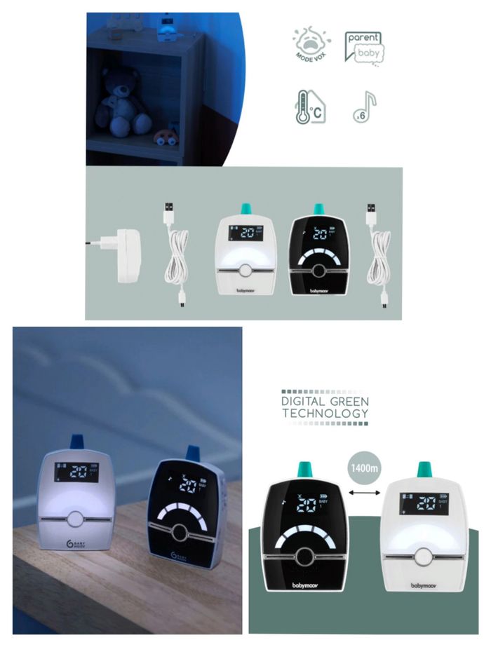 L'ensemble des babyphones audio de la marque Babymoov dispose de la "Digital Green Technology".