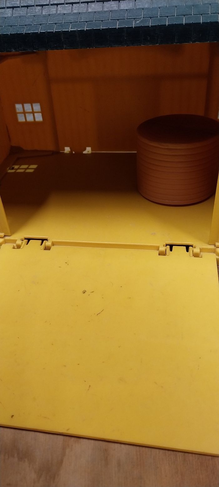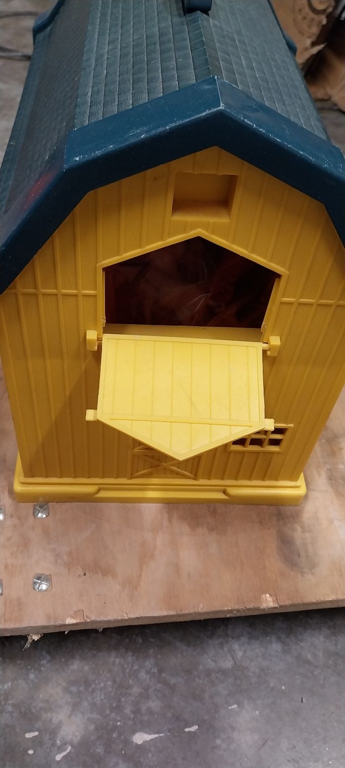 Ferme transportable grâce à sa poignet. S ouvre des 2 côtés. Vendu avec 2 grosses bottes de foin