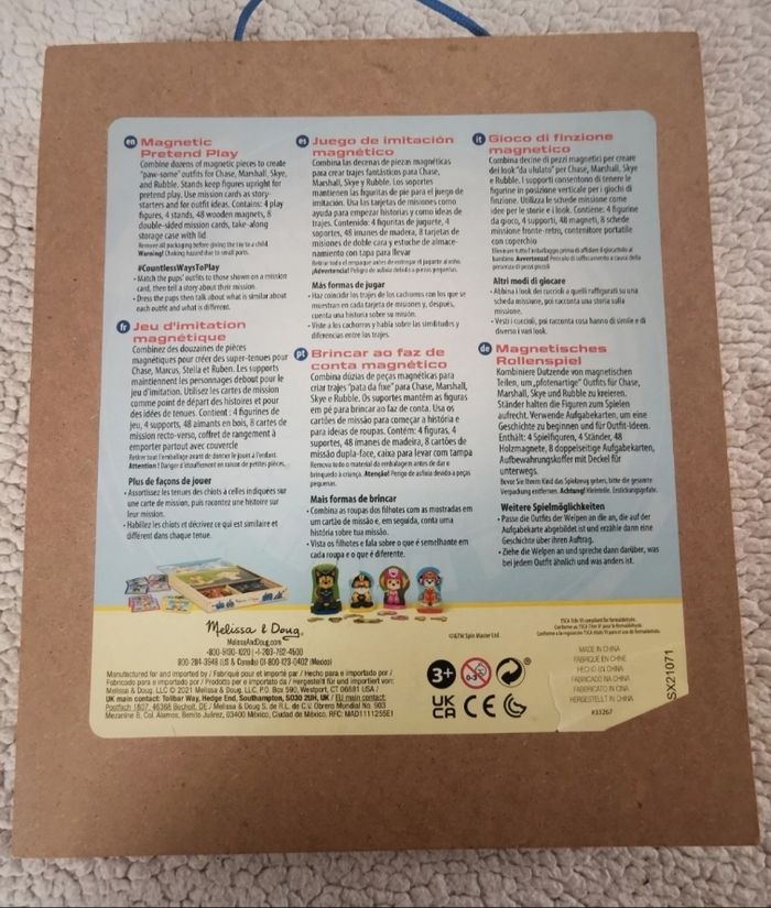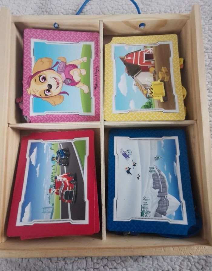 Mélangez et assortissez les vêtements et accessoires magnétiques en bois pour préparer les chiots à affronter n'importe quelle mission. Huit cartes de mission recto-verso offrent des débuts d'histoire et des idées de tenues. Les figurines de jeu, chacune avec un support durable, 48 aimants en bois et des cartes se rangent toutes dans un plateau en bois robuste avec un couvercle coulissant et une poignée pour jouer à faire semblant en déplacement.