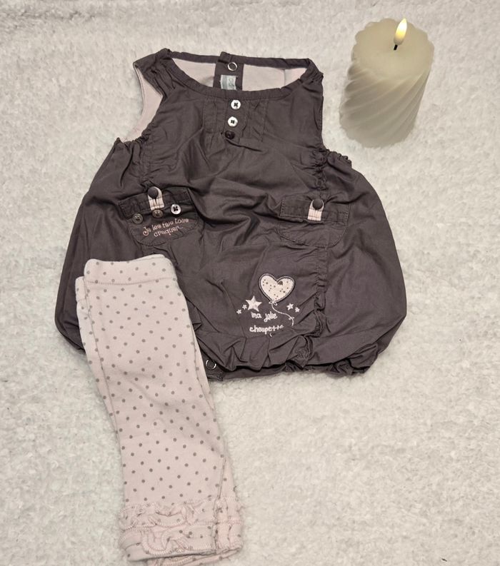 #1moisfille_tatianaalena Joli ensemble robe legging Taille 📏: 1 mois Marque : Kimbaloo État 🏷️: Très bon etat Couleur 🎨 : Marron / Rose