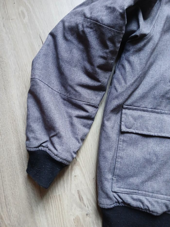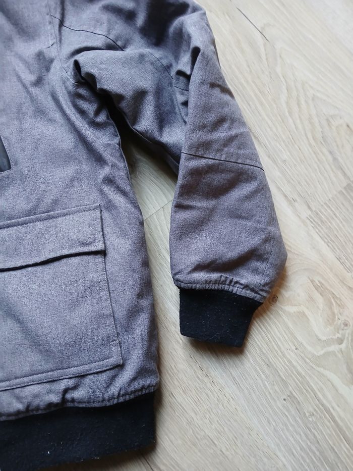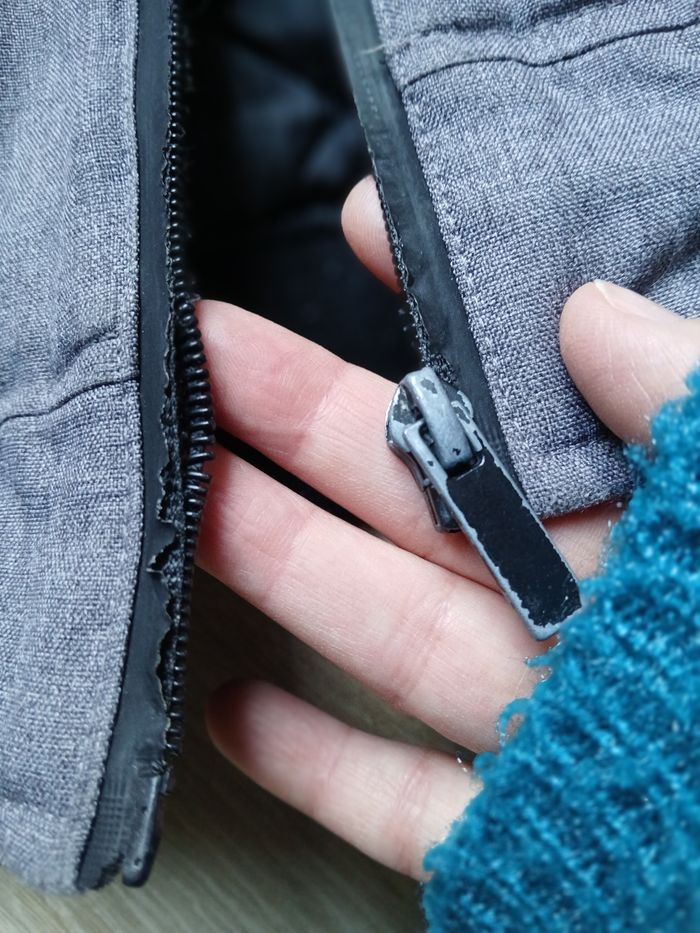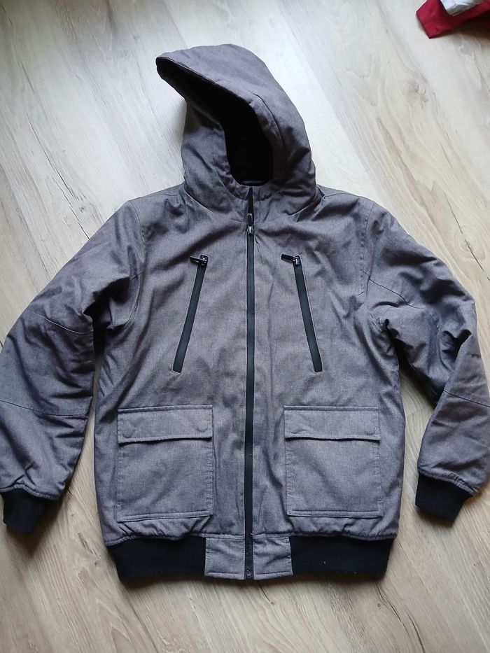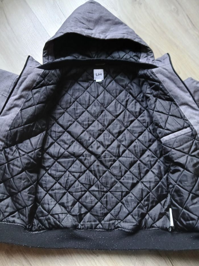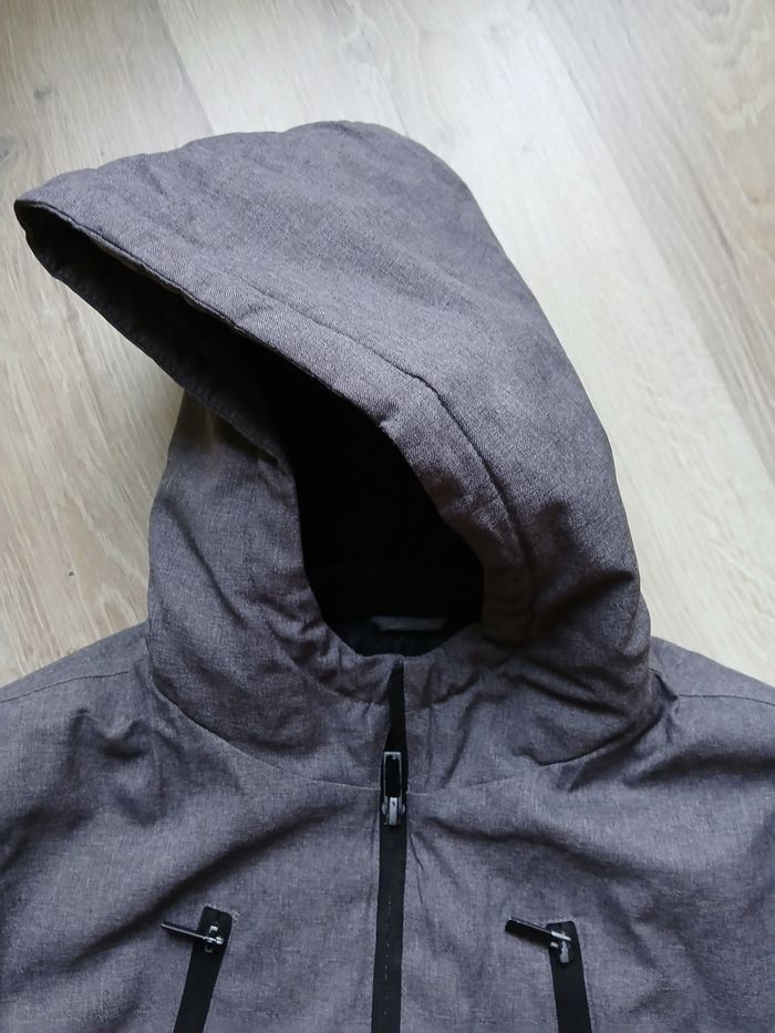Manteau à capuche gris et noir porté une saison bon état général dans l’ensemble. Quelques petites marques d’usures comme le montre les photos ( gris de fermetures éclair un peu parti , quelques bouloches aux poignées et bas , fermeture éclair ). Quatre poches plaquées devant ( 2 zippées sur le buste, 2 à rabat par boutons pressions) ainsi qu’une a l’intérieur. Marque La Halle.
