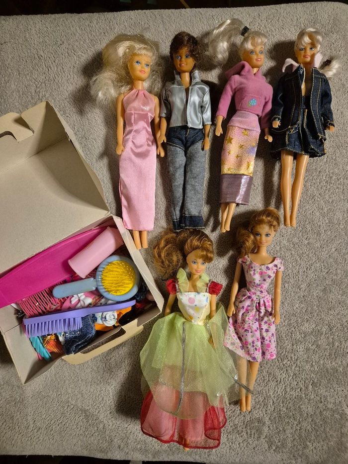Lot barbie avec accessoires Lot de 6 barbier avec une pleine boite d'accessoires plus toutes jeunes on bien servi mais peuvent encore faire le bonheur de quelqu'un.