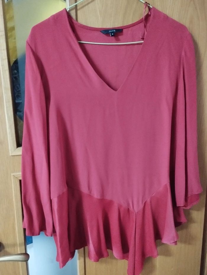 Camisa roja raso. Bajo con volante - photo numéro 1