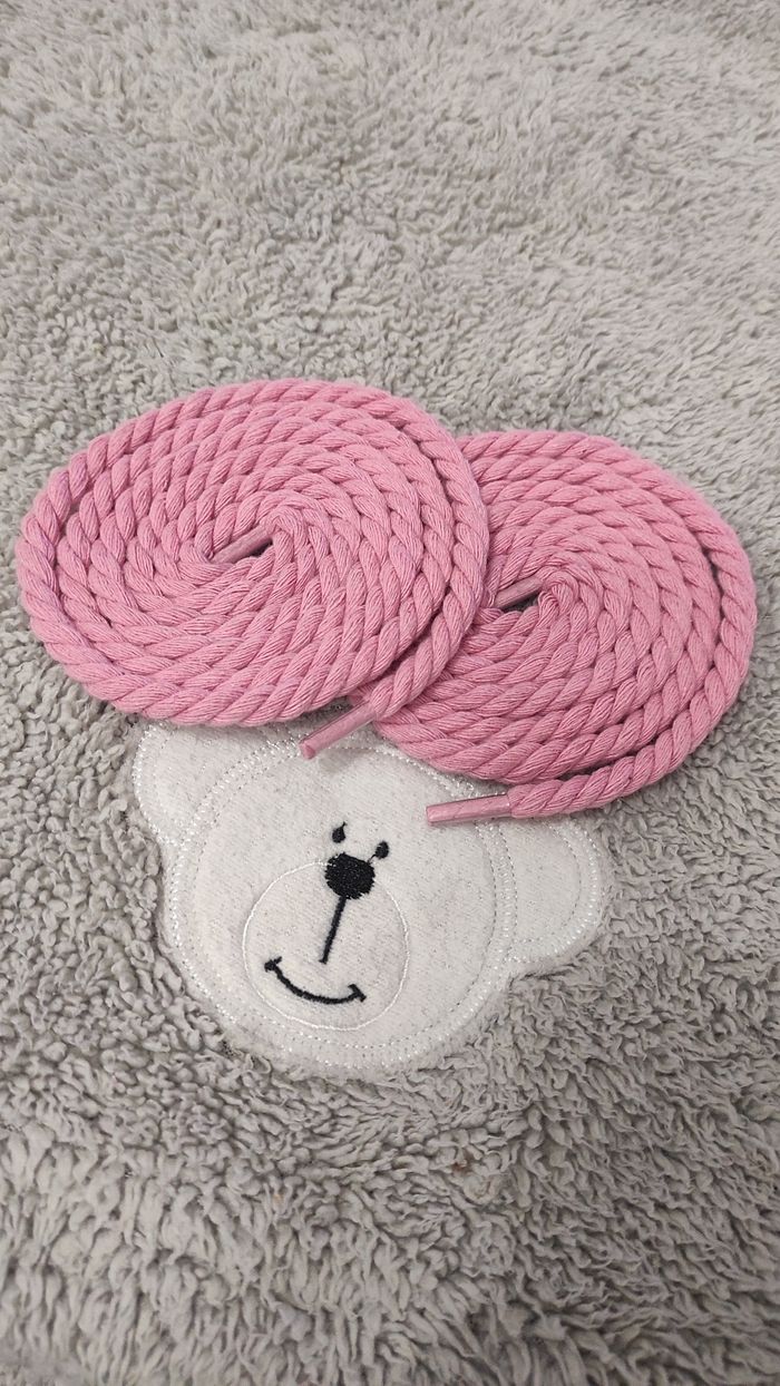 🌸🪢 Lacets corde rose bonbon – 120 cm (touche pop & fun) Boost ton style avec ces lacets corde rose bonbon, idéals pour donner du peps à n’importe quelle paire. Texture épaisse, couleur punchy et ambiance street douce. 👟💗 ✔️ 120 cm ✔️ Modèle corde tressée ✔️ Neufs, jamais utilisés 💰 4 € la paire 👉 MP pour choisir ta teinte rose préférée 💬
