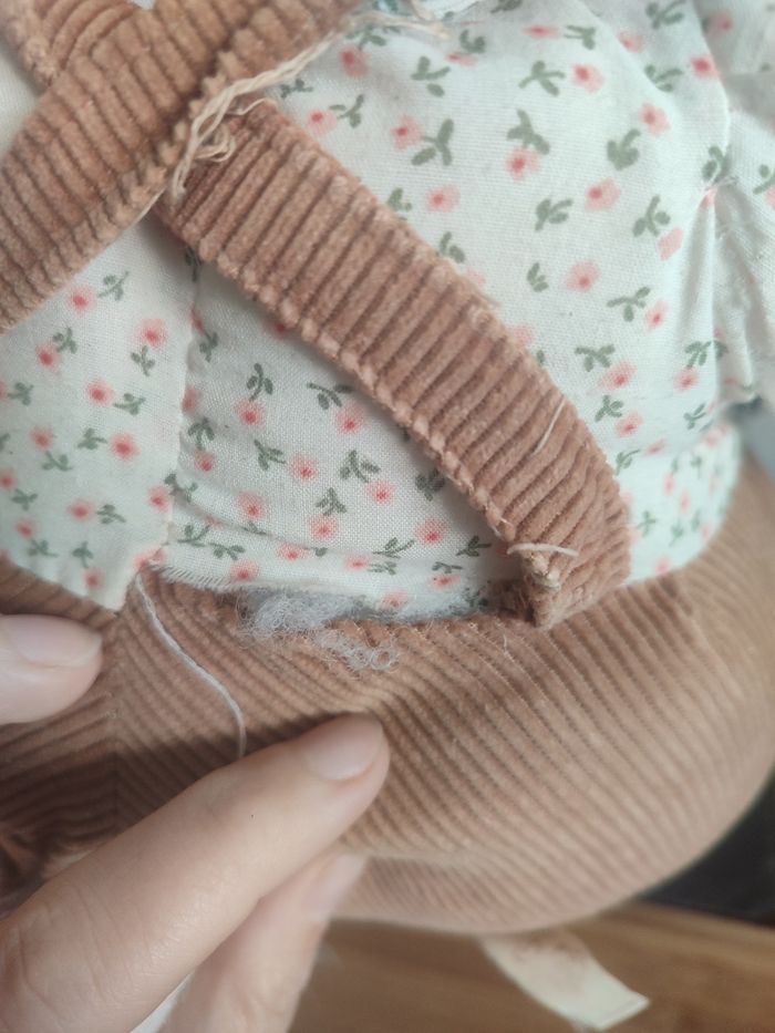 Grande Peluche lapin gris marron tablier salopette fleur blanc jemini Noeud - photo numéro 6