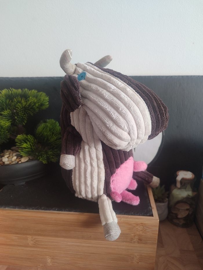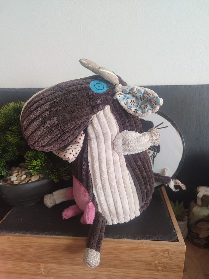 doudou vache peluche deglingos beige marron cloche rose bleu fleur yeux Milkos - photo numéro 1
