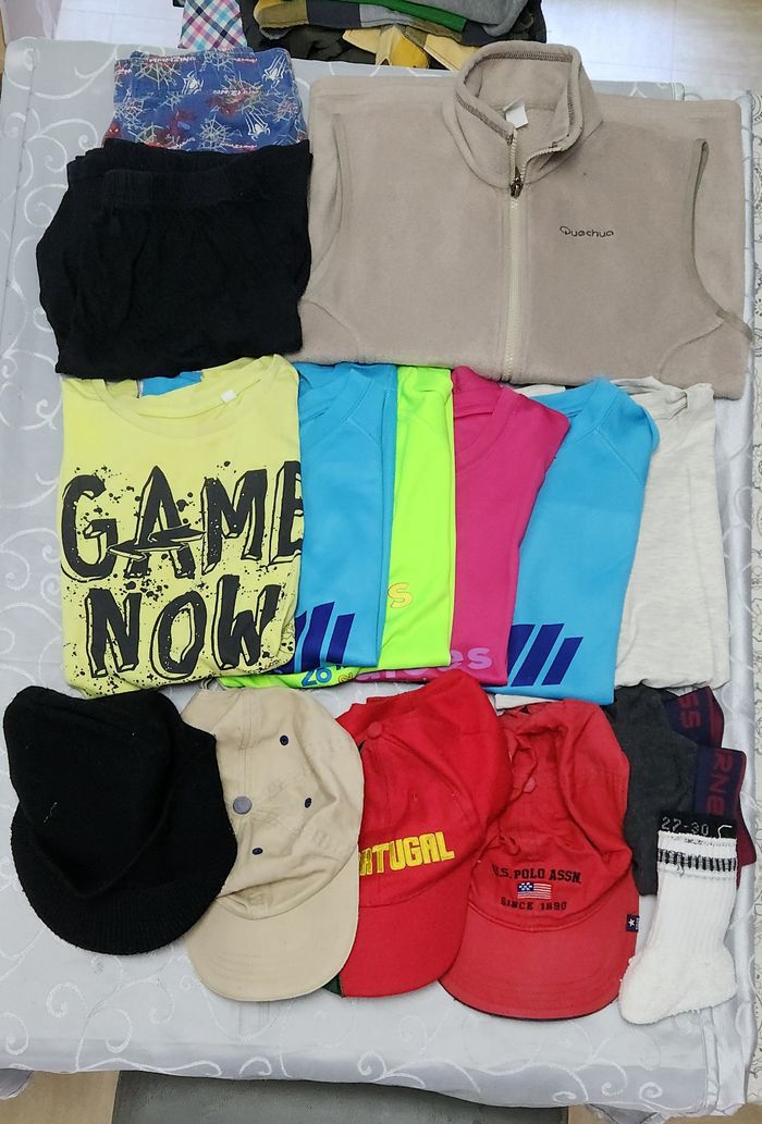 Lot vêtements garçon 12 ans 1 veste polaire sans manches Quechua, 2 shorts, 6 t shirts , 3 casquettes, 1 bonnet...