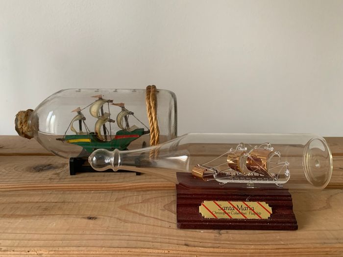 Lot 2 bouteilles en verres avec bateaux - photo numéro 1
