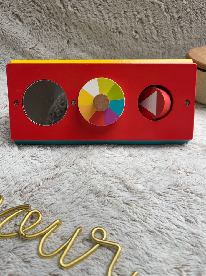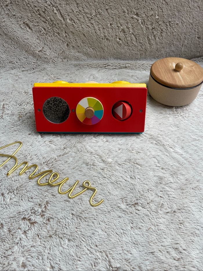 Composé de 3 faces et 9 activités sensorielles : 3 activités visuelles, 3 tactiles et 3 auditives