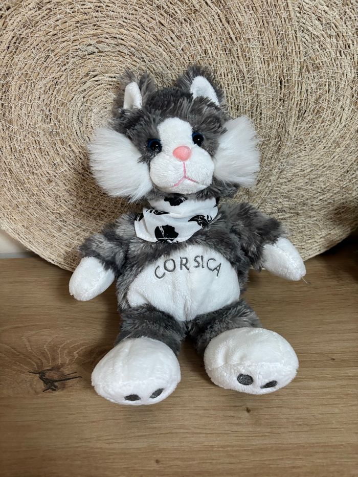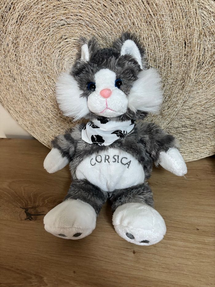 Doudou chat gris blanc bandana corsica entre ciel et mer