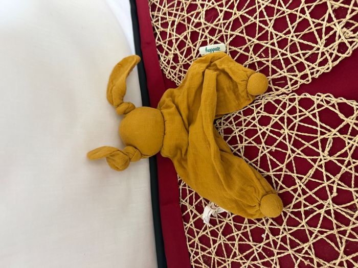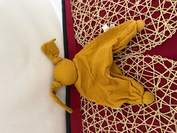 Doudou Floppy lange tissu bio jaune ocre HOPPA - photo numéro 4