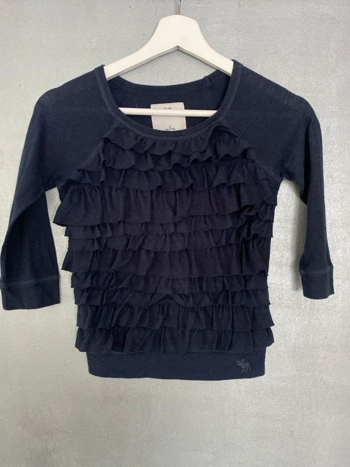Top bleu marine à manches 3/4 avec volants et logo Abercrombie
