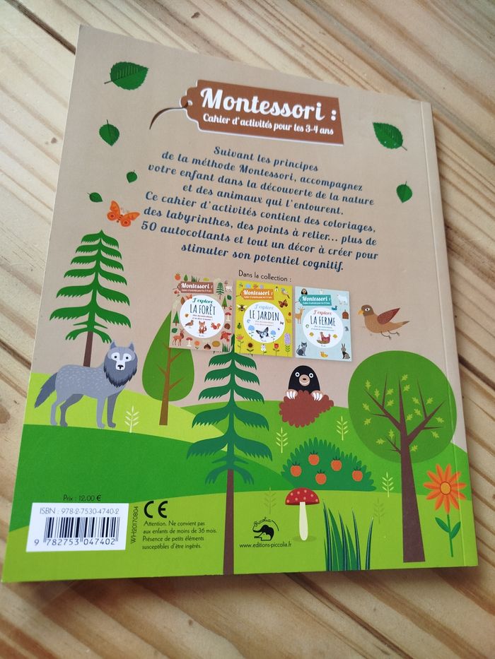 Livre Montessori pour les 3-4 ans neuf j'explore la forêt avec autocollant et un décor marque piccolia neuf jamais servi