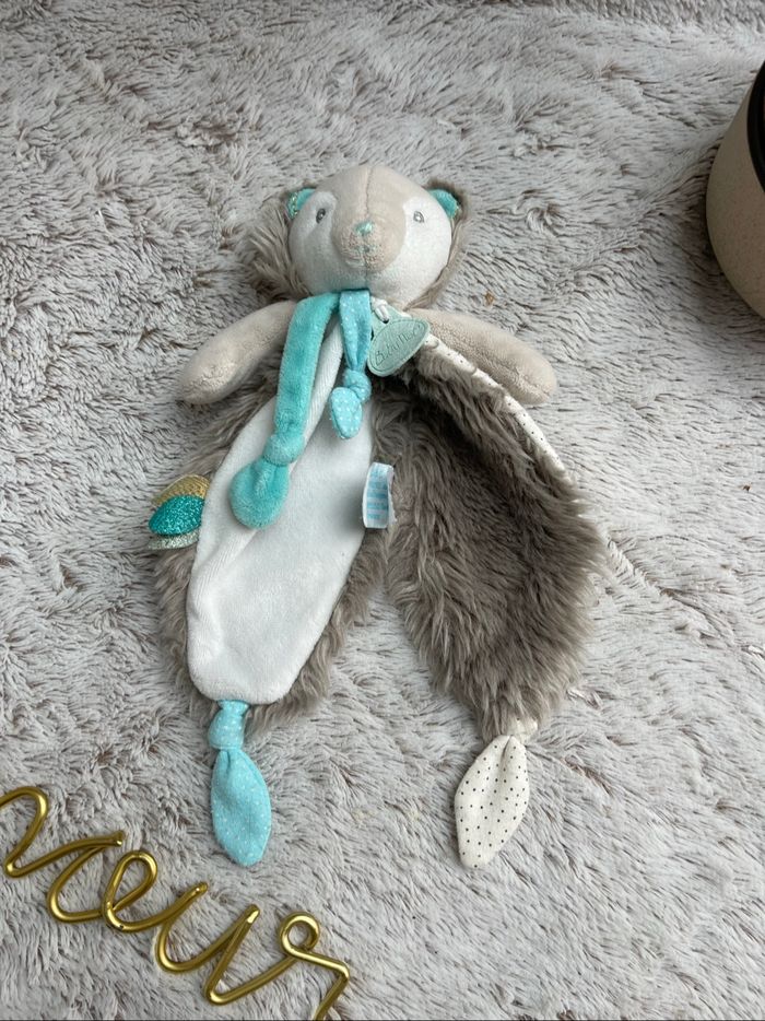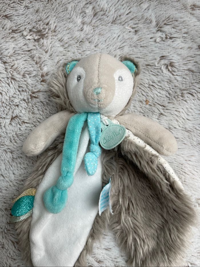 Doudou ours renard hérisson beige blanc marron babynat' frisounous Excellent état Juste laver pas servit comme doudou à mes filles Dès la naissance