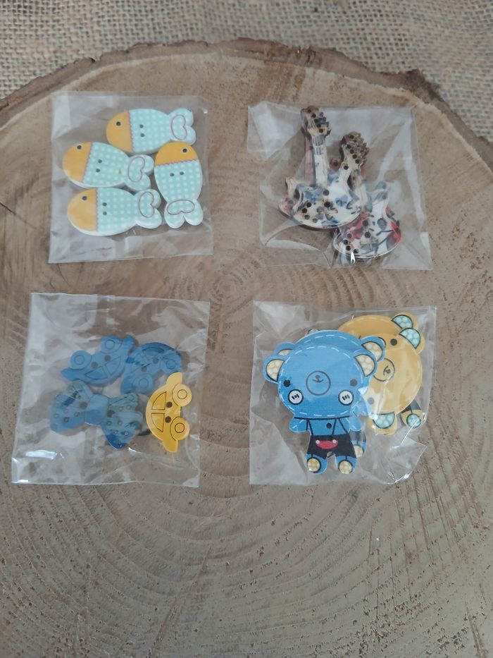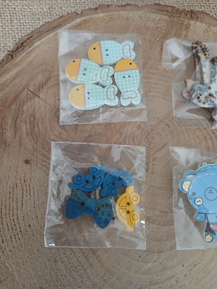 Lot de 4 sachets de boutons en bois D'autres breloques perles pompons boutons biais tissu ect de dispo ds mon dressing n'hésitez pas à jeter un coup d'œil ou à me demander
