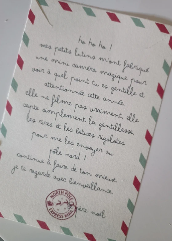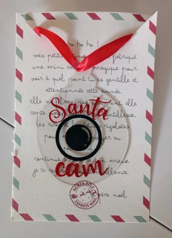 A vendre boule de noel a crocher dans le sapin "Santa Cam" avec sa petite carte explicative du père noel Neuf.