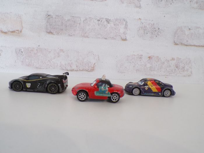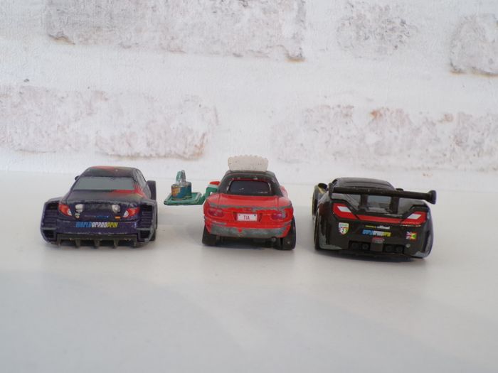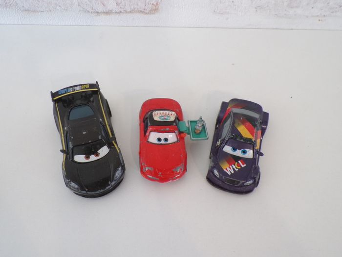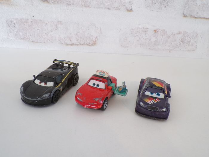 Voitures Cars - Flash Mc Queen - Lewis Hamilton - Tia - Max Schnell, en assez bon état.