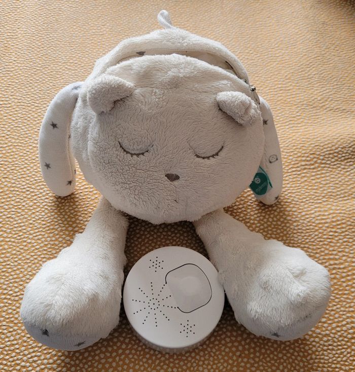 Peluche de la marque MyHummy, qui fourni des bruits blancs pour apiser bébé