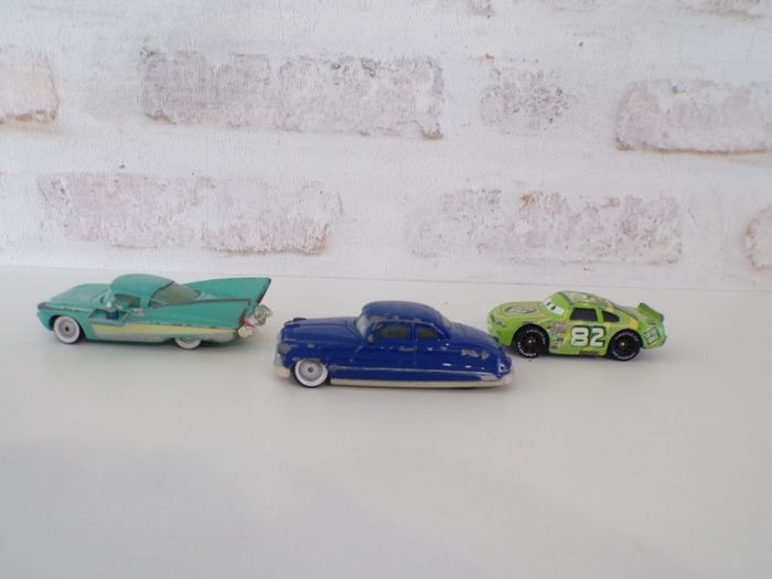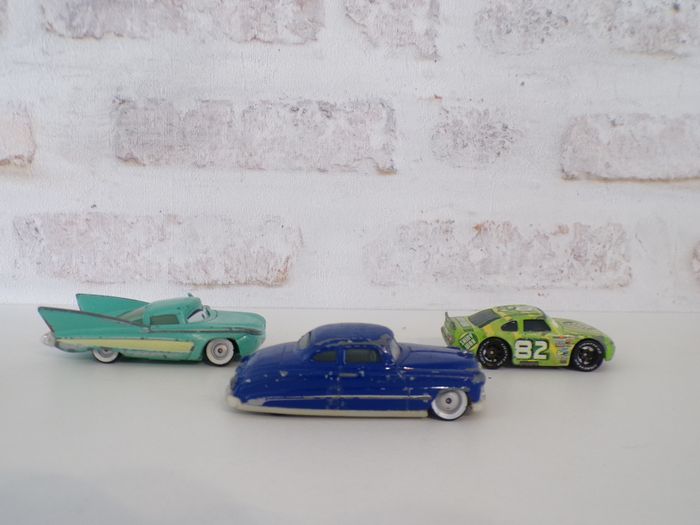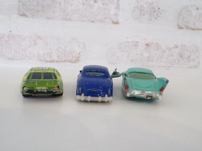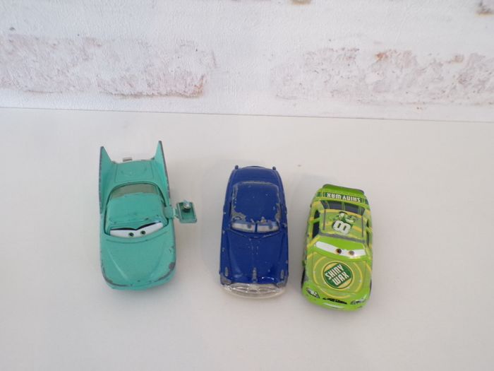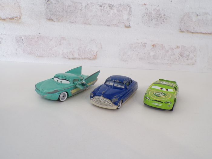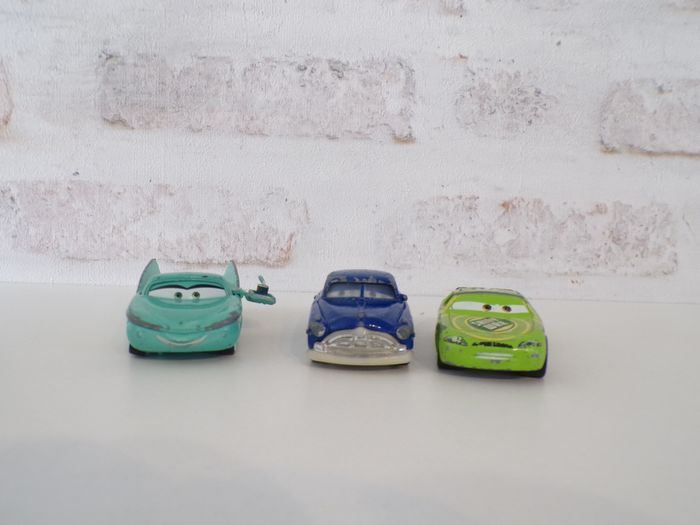 Voitures Cars - Flash Mc Queen - Flo - Doc Hudson - Shiny Wax, en assez bon état.