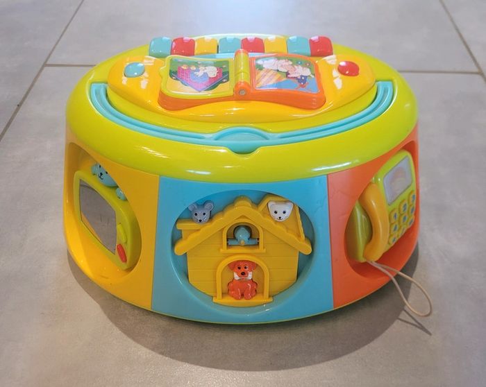Boîte d'activités sonores, pour développement la curiosité de bébé, plusieurs activités différentes. De la marque Oxybul Mes enfants ont joués avec donc il peu y avoir quelques traces, mais celle ci reste en très bon état. Nettoyée avant la vente et fonctionne parfaitement. Vendue sans piles