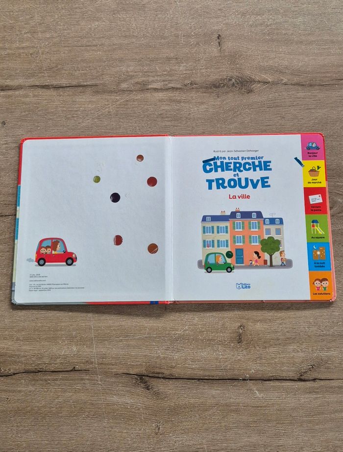 Livre Mon tout premier Cherche et Trouve : La ville Éditions Lito Bon état (des gommettes ont été collées sur la 1ère page, et le bas de la tranche de la couverture est un peu abîmé, voir photos)