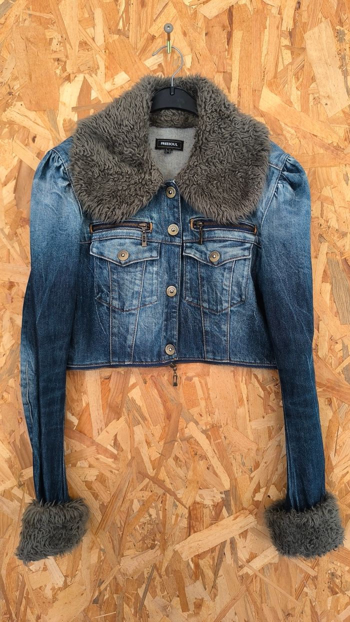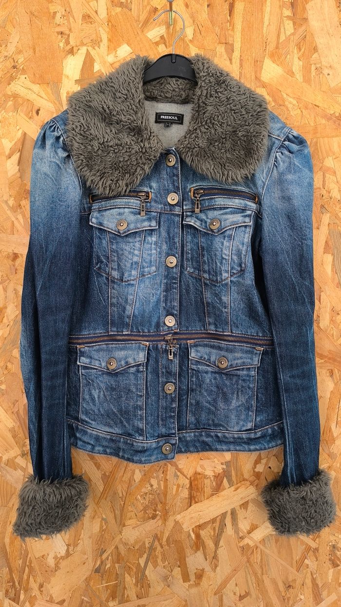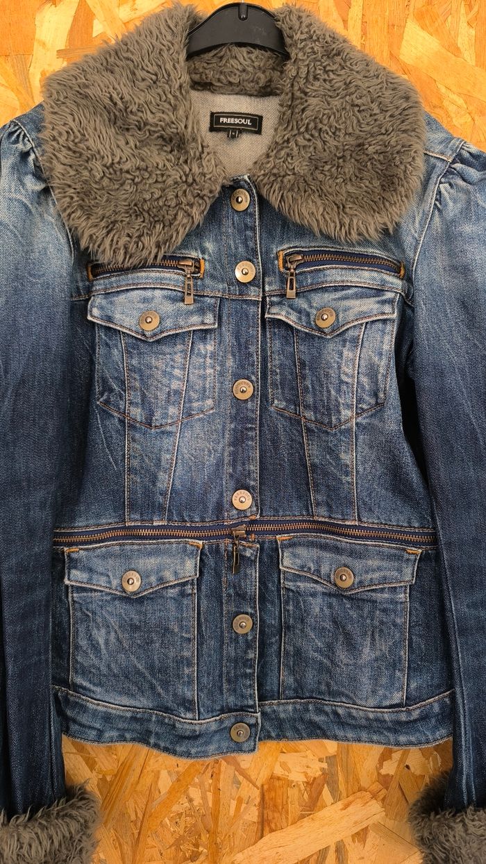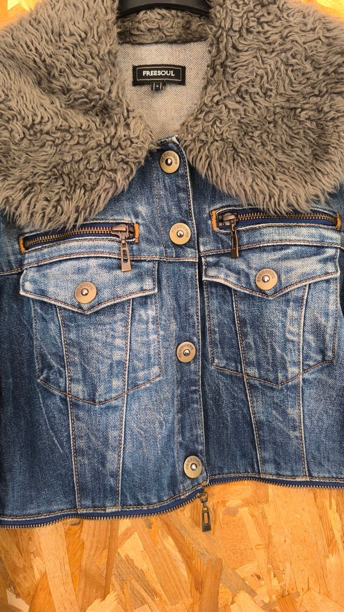 Veste en jean délavé style rock/biker, pour un look affirmé.