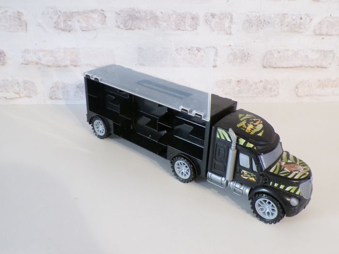 Camion transporteur, en bon état, traces d'utrlisation, un petit crochet sur le dessous est cassé, la porte tient toujours. Ne gène pas pour le jeu. Mon dressing est trié par catégories, tailles et saisons pour les vêtements. Cliquez sur mes liens # qui sont dans l'annonce. #sonia222404 #jouetenfantsonia222404