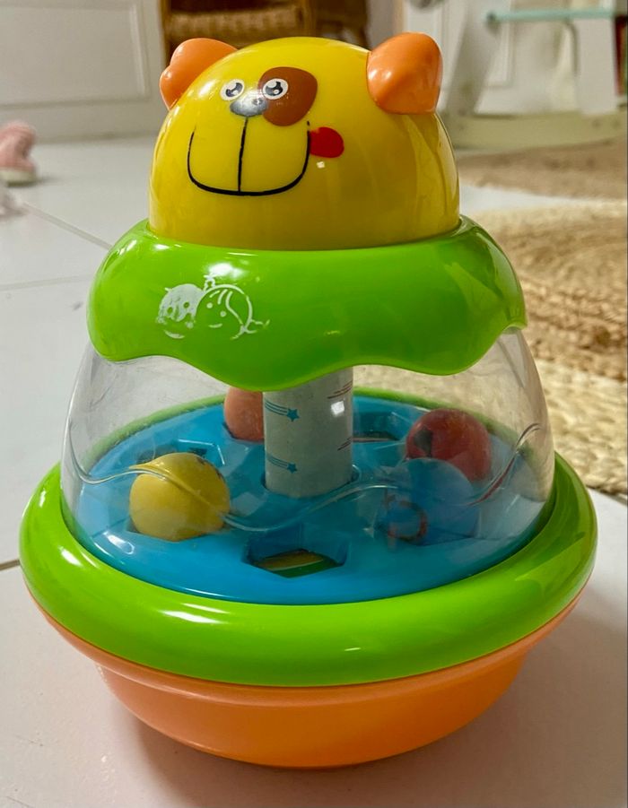 Jouet toupie avec boule pour bébé Bébé appuie dessus les boules tournent a l'intérieur et vont se loger dans les formes