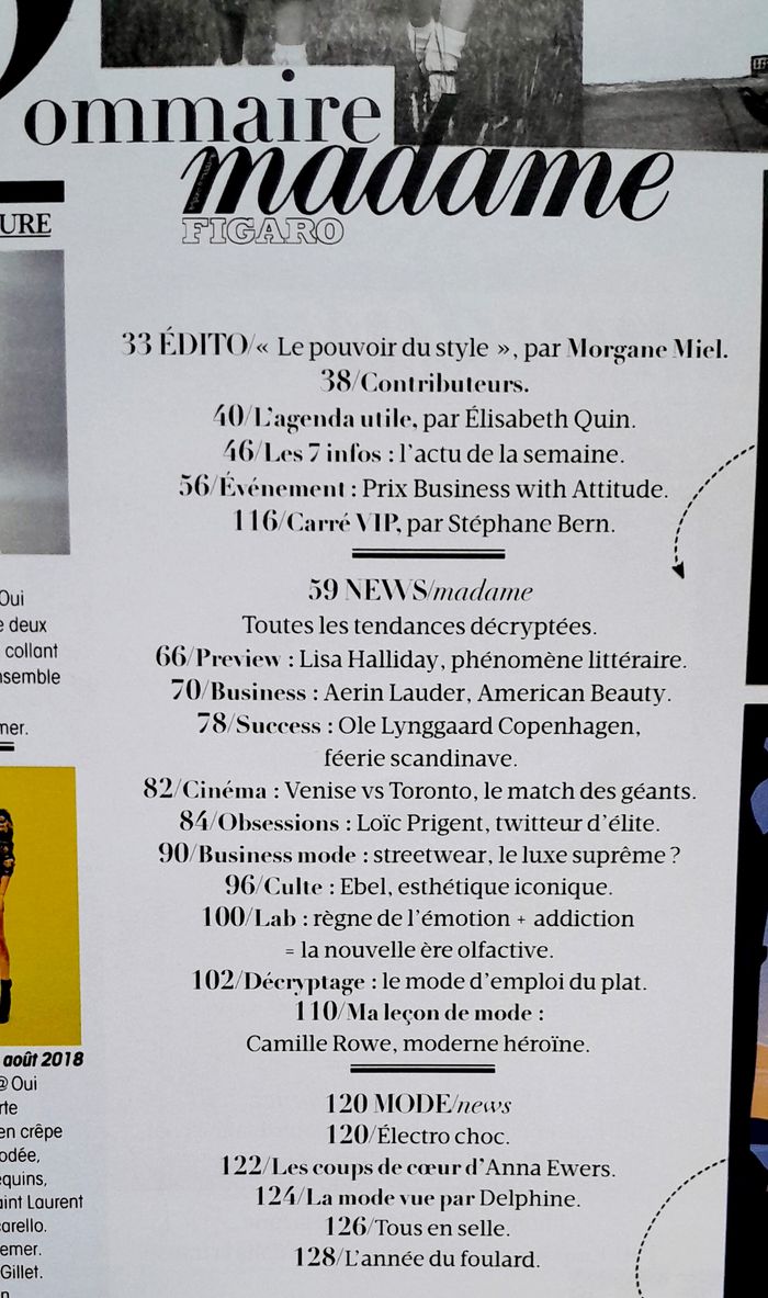 Magazine Madame Figaro Madfor n°5 septembre 2018 spécial Mode et Nadja Bender - photo numéro 4