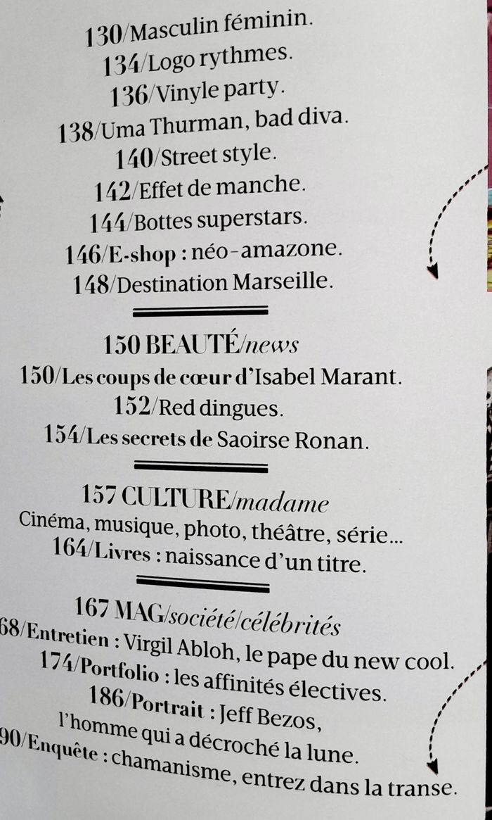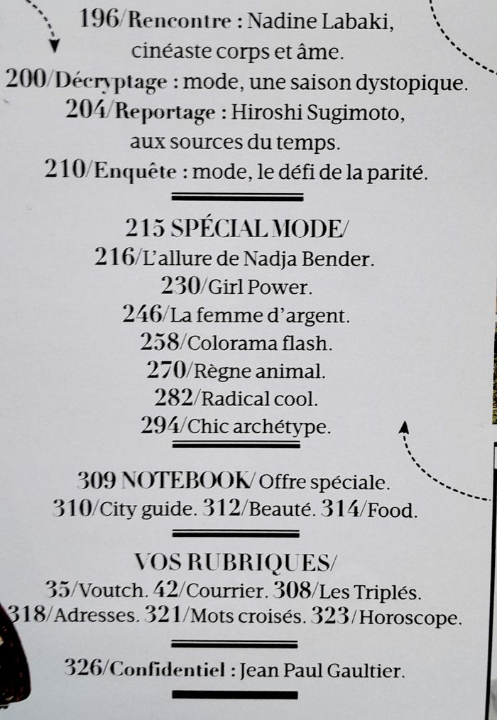 324 pages 27x21cm spécial Ryan Gosling, le mode d'emploi plat, Virgil Abloh, Christian Louboutin, Véronique Nichanian, Chitose Abe, Alexandre Mattiussi, Jeff Bezos, chamanisme, Nadine Labaki, Hiroshi Sugimoto, mode girl wer, mode la femme d'argent, mode colorama flash, mode règne animal, mode radical cool, mode chic archétype...